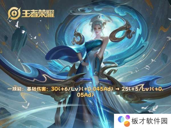 本次调整伽罗一技能:基础伤害:30(+6/Lv)(+0.045Ad) → 25(+5/Lv)(+0.05Ad)。