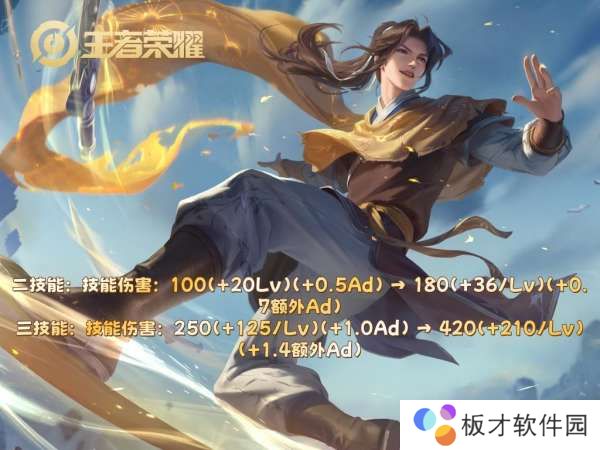 本次调整曜二技能:技能伤害:100(+20Lv)(+0.5Ad) → 180(+36/Lv)(+0.7额外Ad),三技能:技能伤害:250(+125/Lv)(+1.0Ad) → 420(+210/Lv)(+1.4额外Ad)。