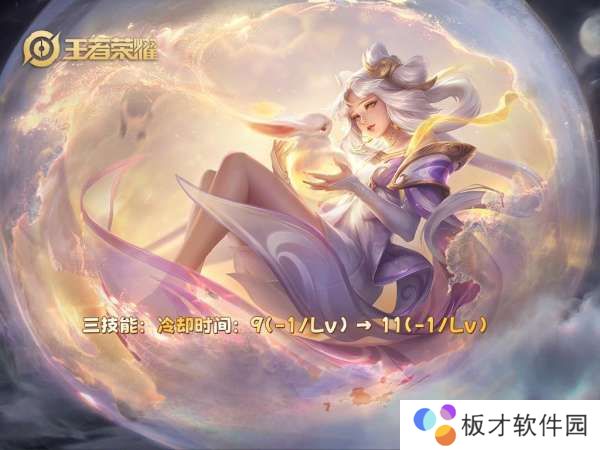本次调整嫦娥三技能:冷却时间:9(-1/Lv) → 11(-1/Lv),增加了嫦娥大招2秒的冷却时间,使其强度有所下降。
