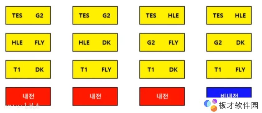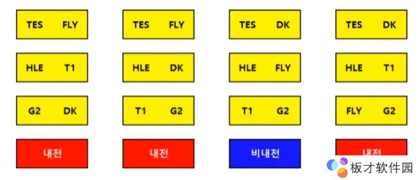 下图为抽签的全部可能性:其中仅有两种蓝标的可能性中,未有LCK内战出现,其余情况下都将会有LCK赛区队伍交手