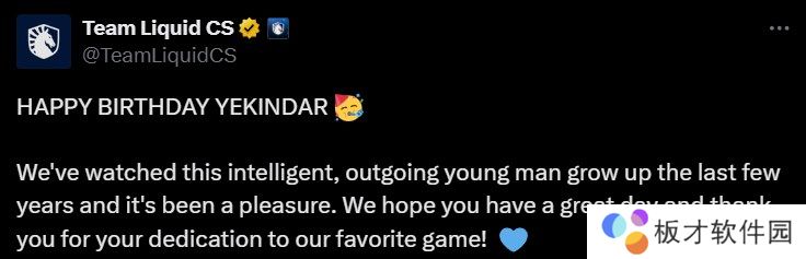 今天Liquid俱乐部在社交平台上祝福队内选手YEKINDAR迎来25岁生日。