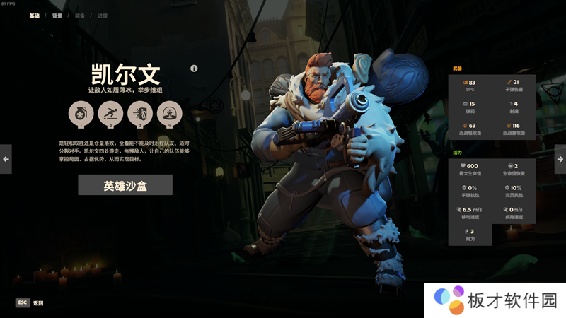 普攻:武器为初始备弹为15发的射冰枪,一次发射1发弹丸,子弹无下沉,右键放大瞄准。